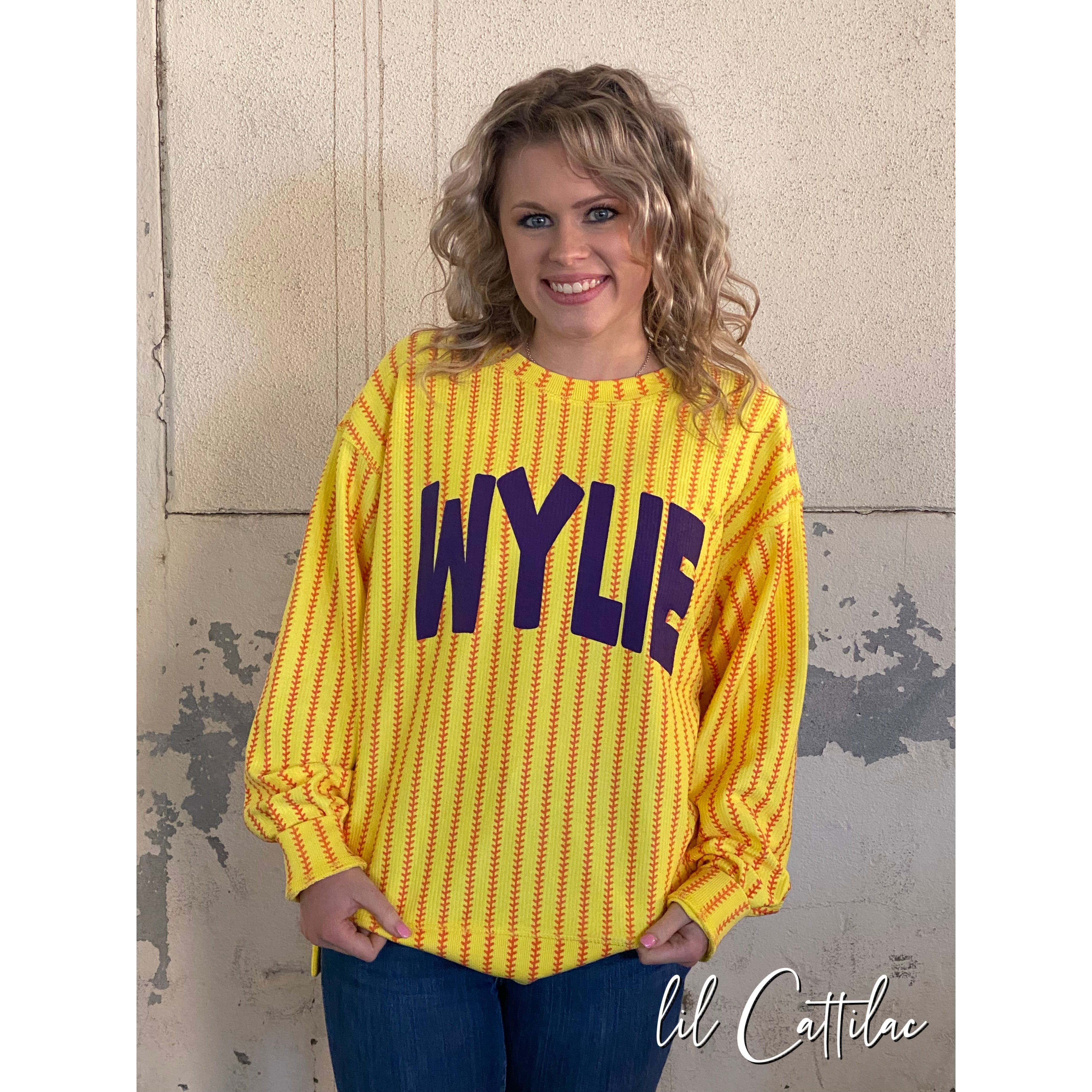 • Shown on a Softball Cozycord Crewneck w/ Side Slits