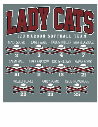 Hawley Lady Cats Softball - 12U Maroon Grey Tees