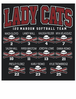 Hawley Lady Cats Softball - 12U Maroon Black Tees
