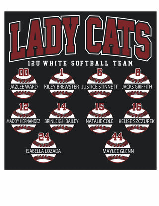 Hawley Lady Cats Softball - 12U White Black Tees