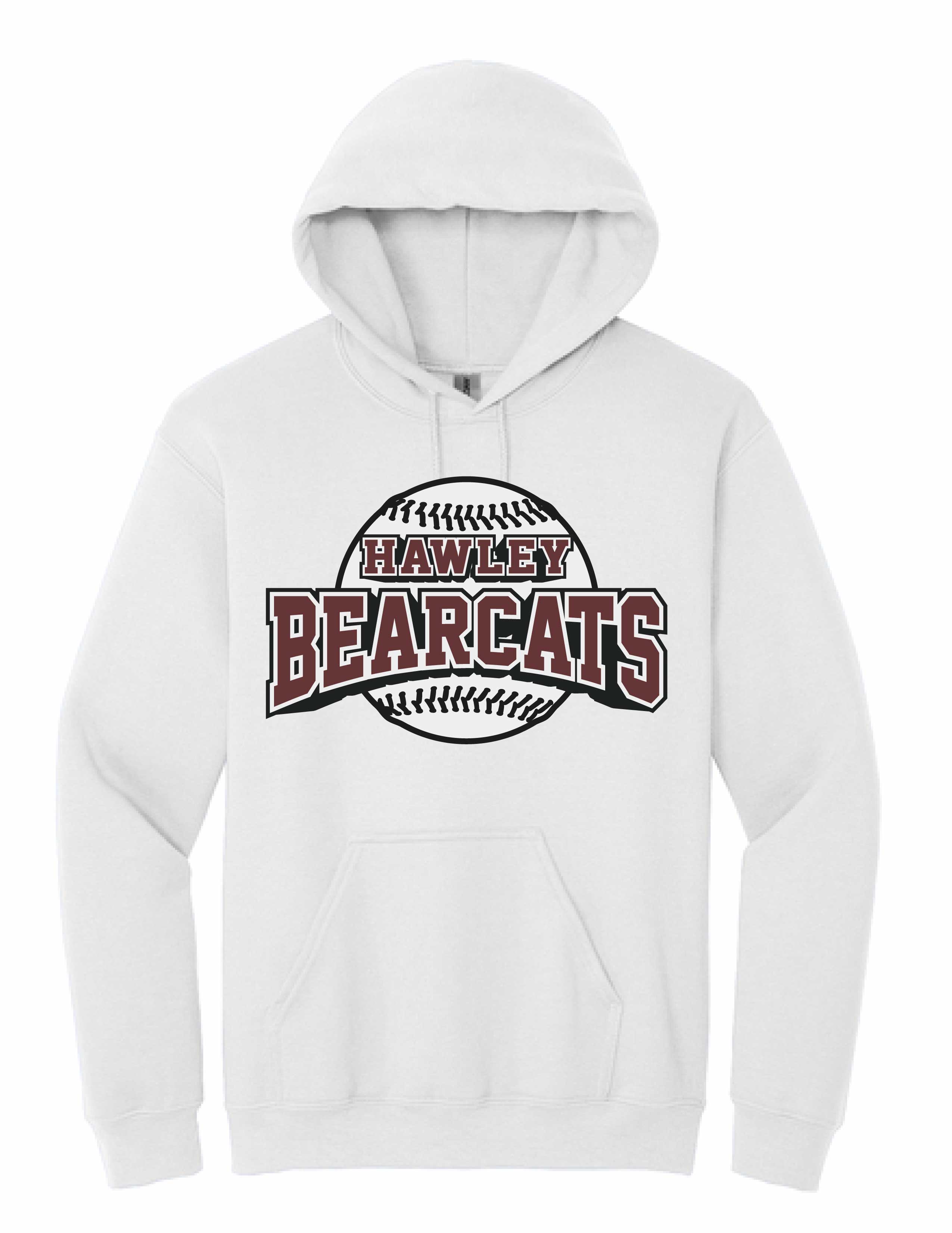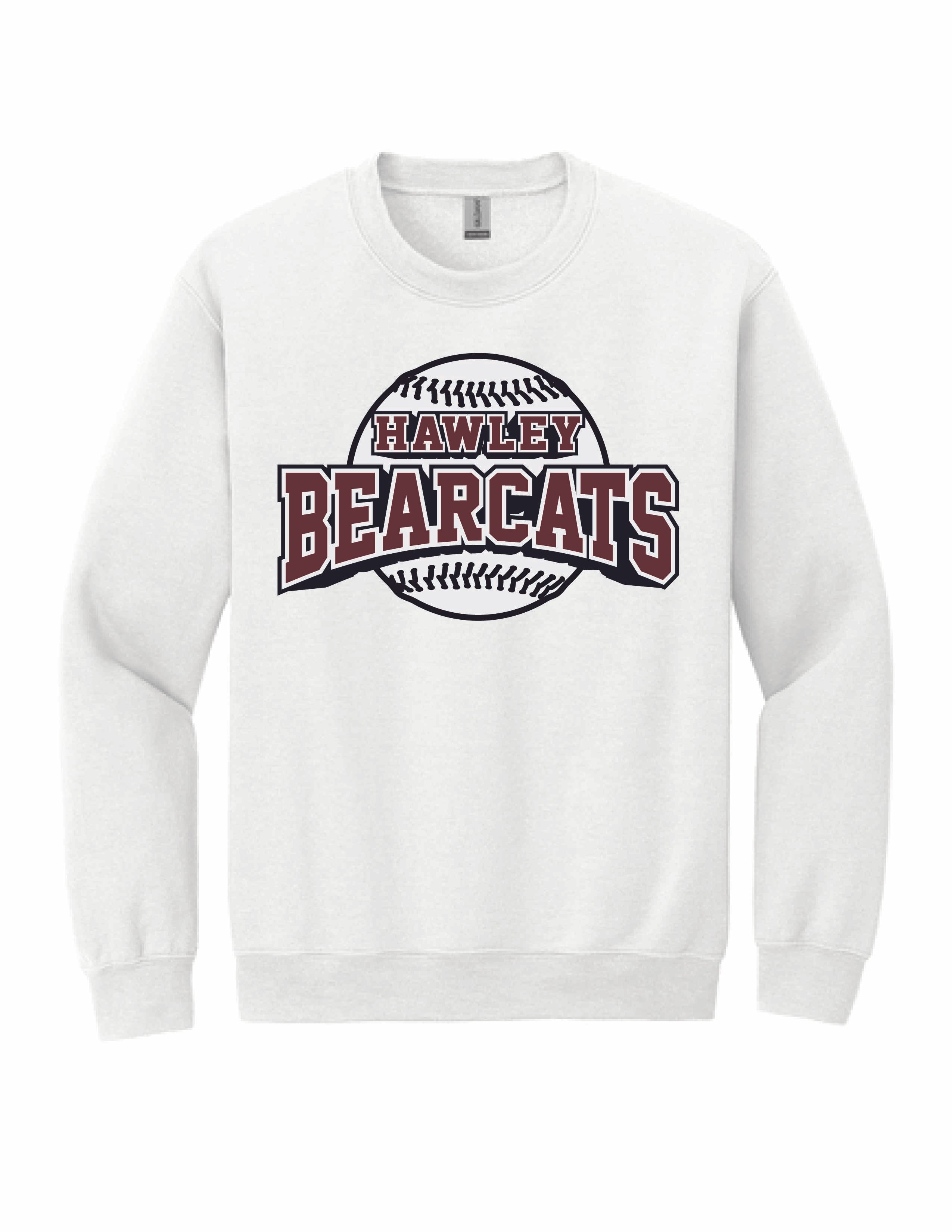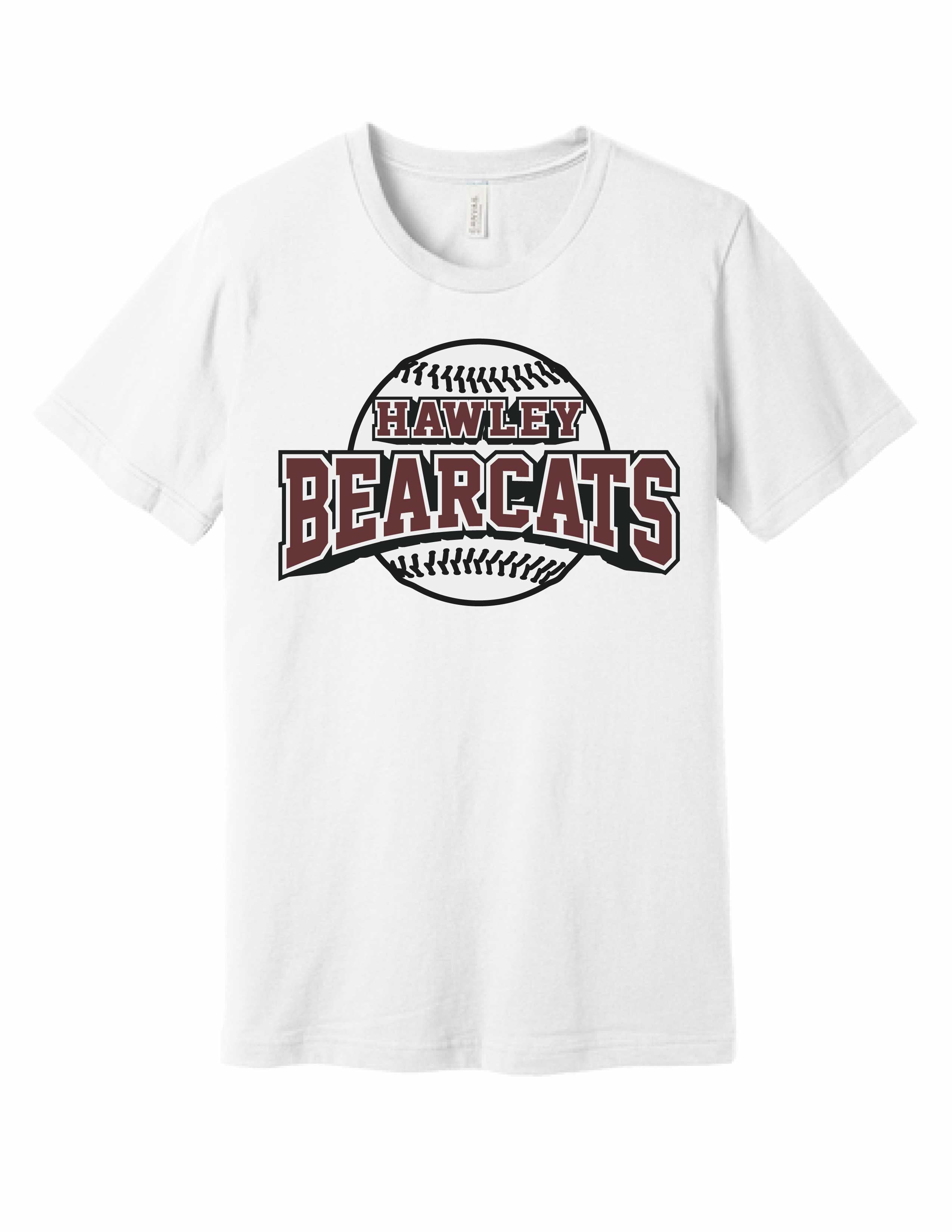 This is a Pre-Order!  The DEADLINE to order is on Sunday, March 8th. Show your support for the Hawley Bearcat Minor Baseball team with some merchandise.  Hawley Baseball design on the front with Roster on the Back of a White Tee.  6 different shirt options to choose from Short Sleeve or Long Sleeve - Cotton or Wicking, Crewneck Sweatshirt or Hoodie.