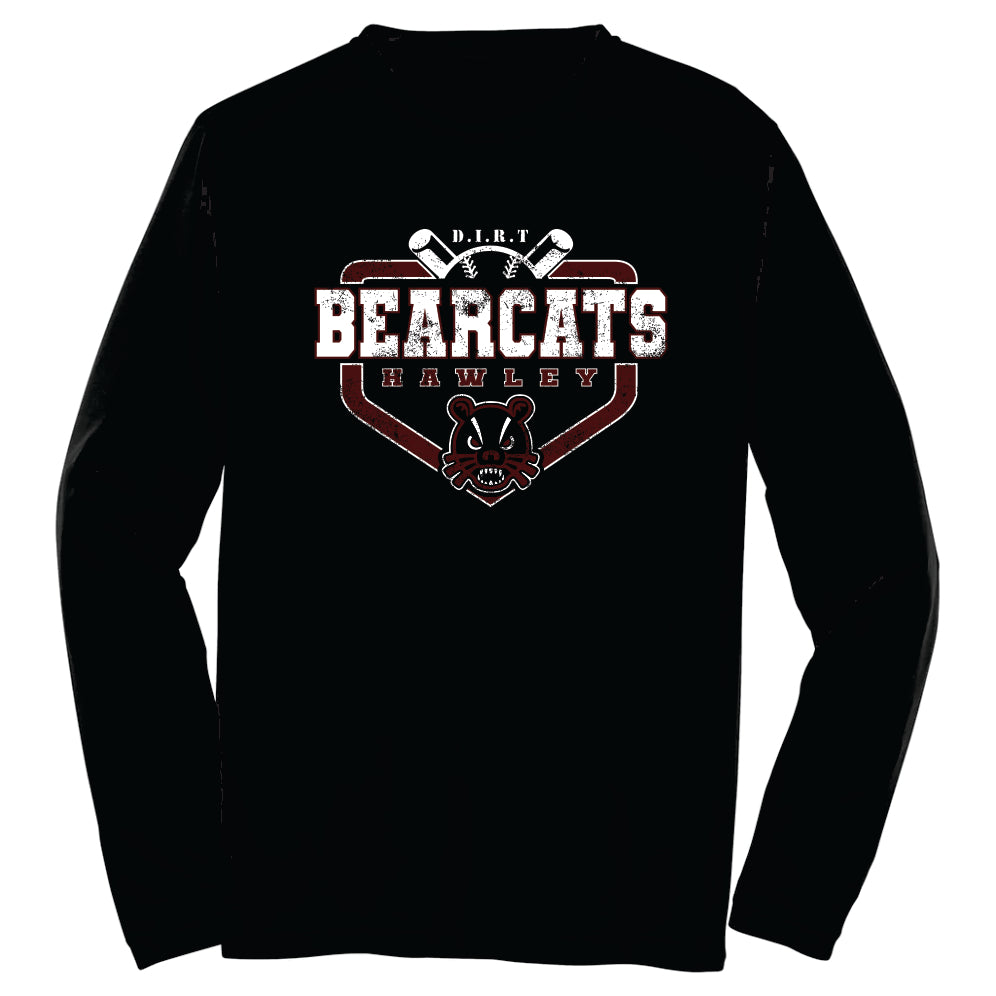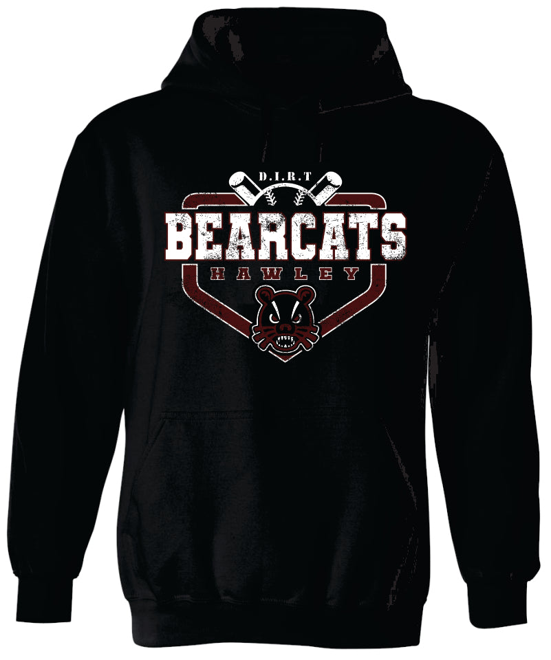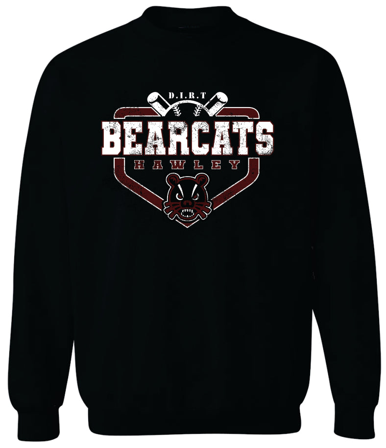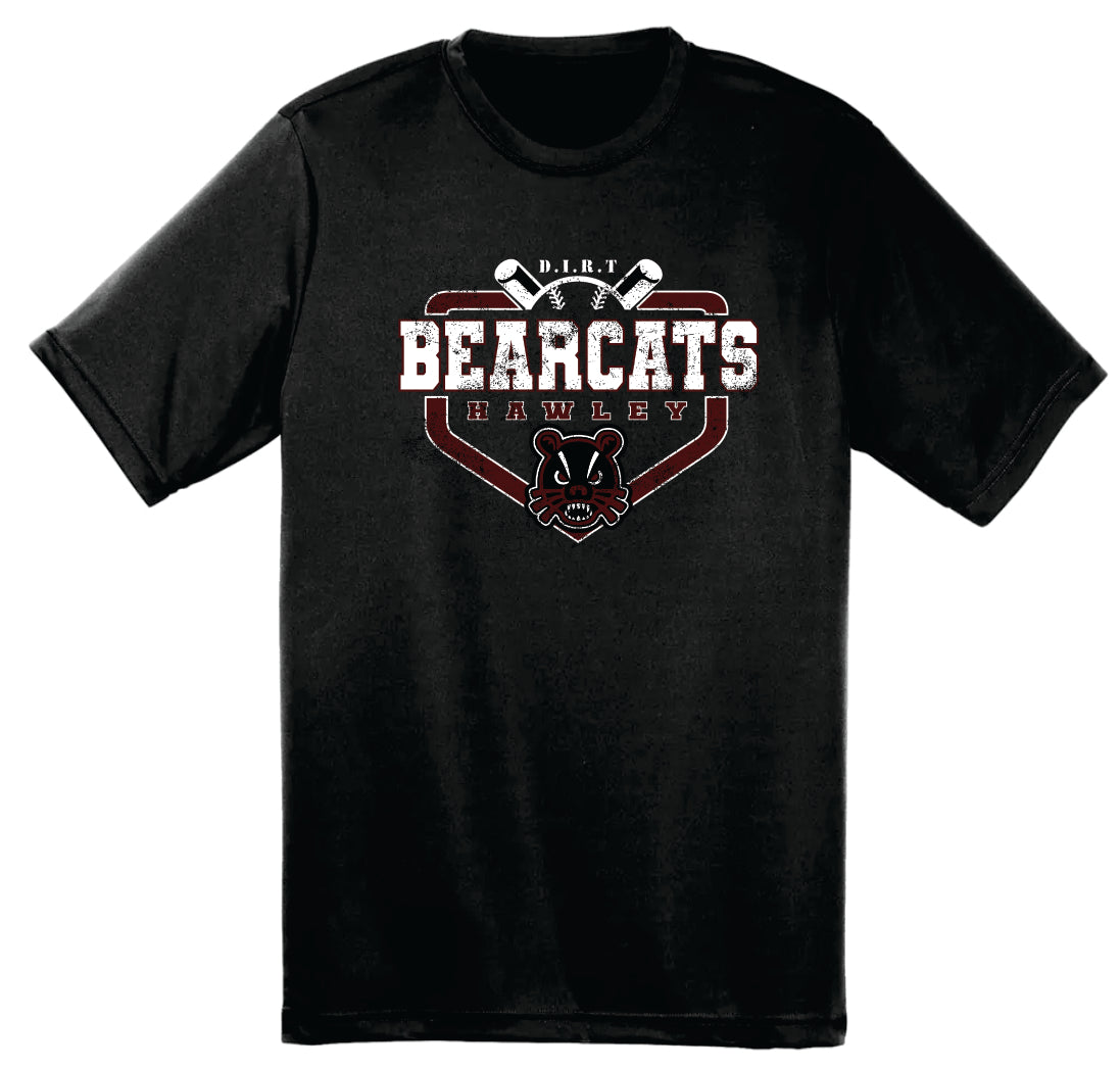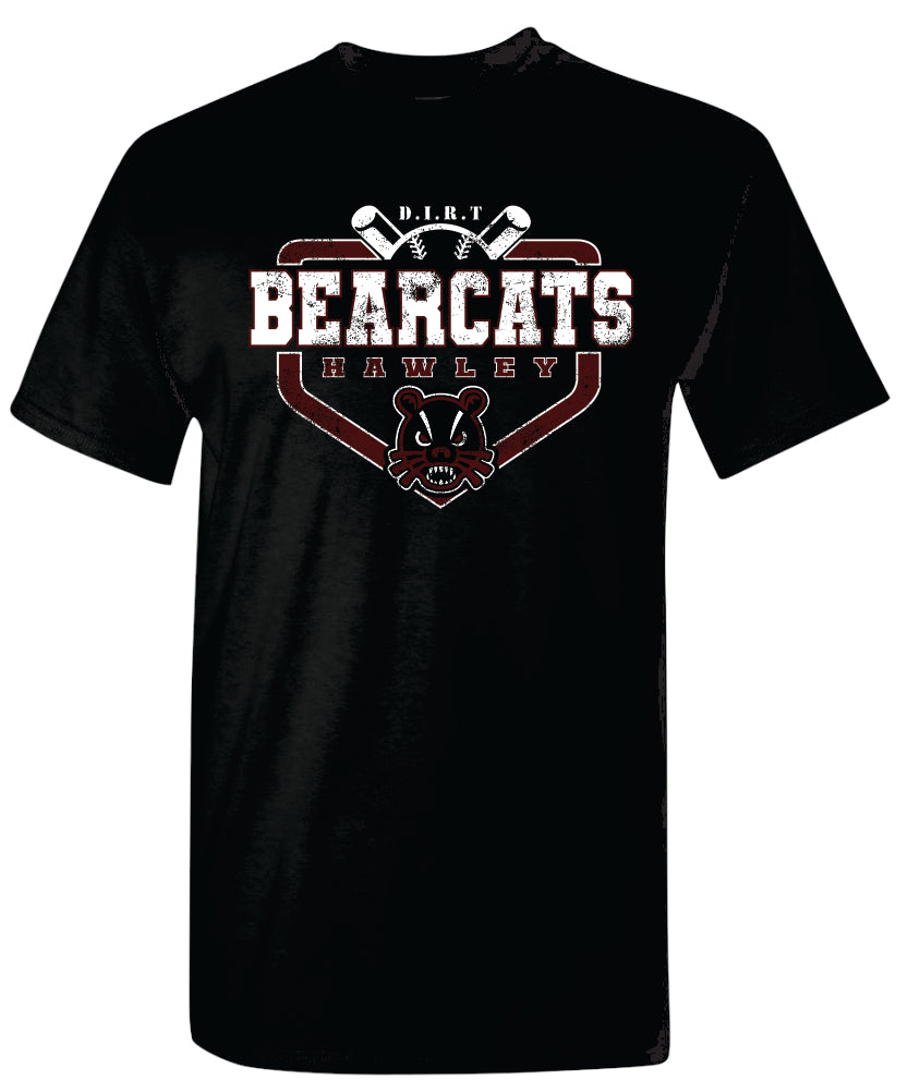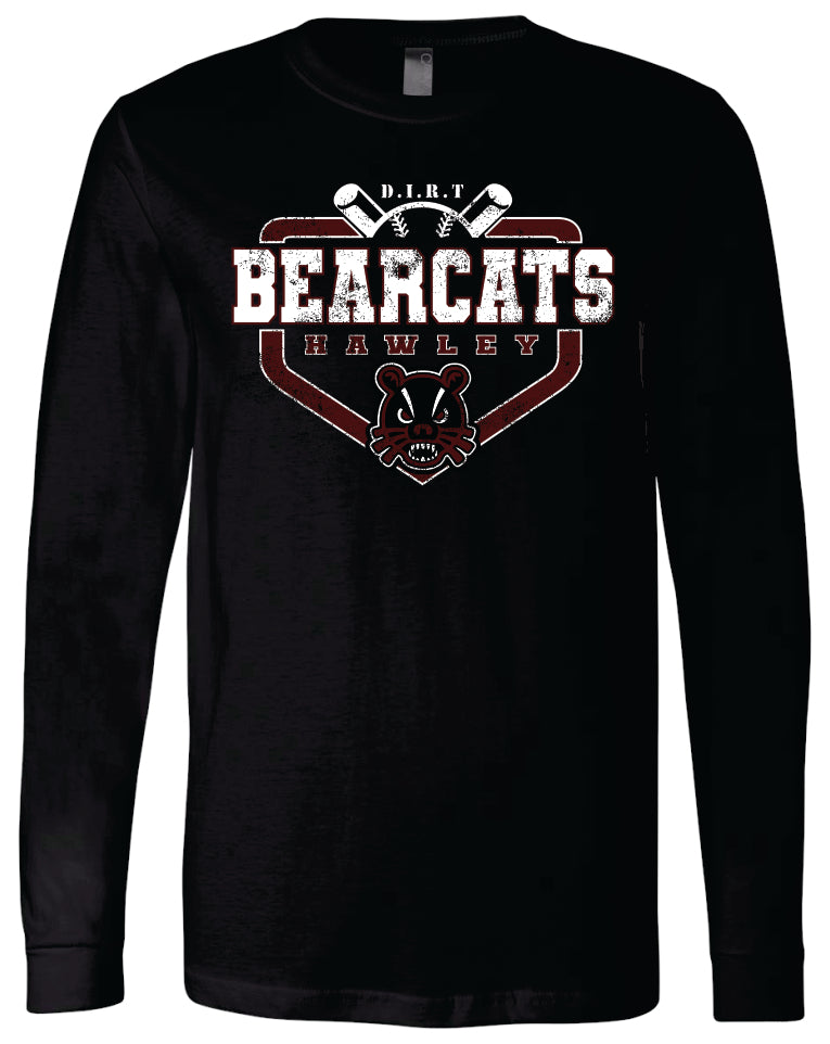 This is a Pre-Order! The DEADLINE to order is on Sunday, February 15th. Show your support for the Hawley Bearcat Baseball team with some merchandise. Hawley Baseball design on the front of a Black Tee. 6 different shirt options to choose from Short Sleeve or Long Sleeve - Cotton or Wicking, Crewneck Sweatshirt or Hoodie.