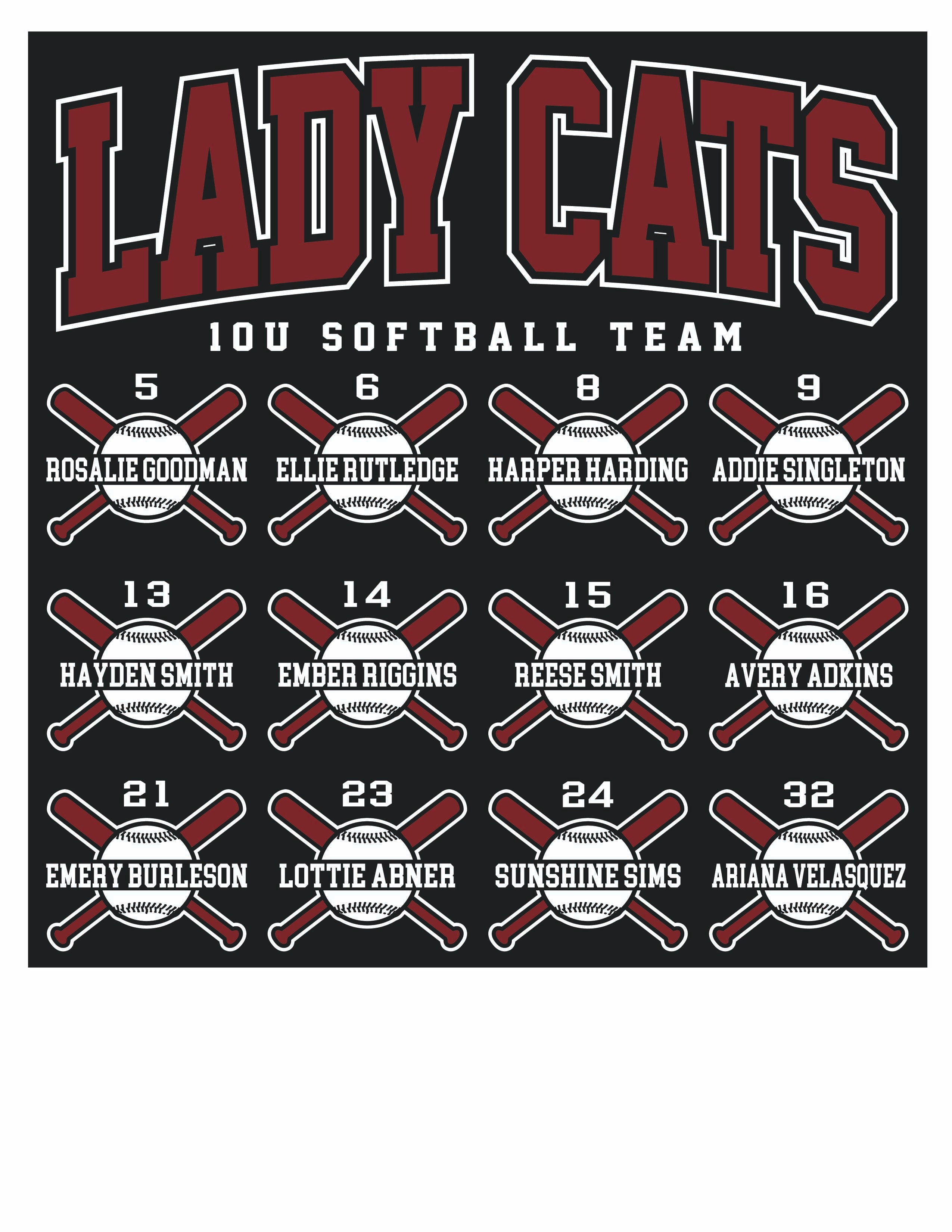 March 18th. Show your support for the Hawley Lady Cats Softball team with some merchandise. Hawley Lady Cats design on the front with Roster on the Back of a Black Tee. 6 different shirt options to choose from Short Sleeve or Long Sleeve - Cotton or Wicking, Crewneck Sweatshirt or Hoodie.