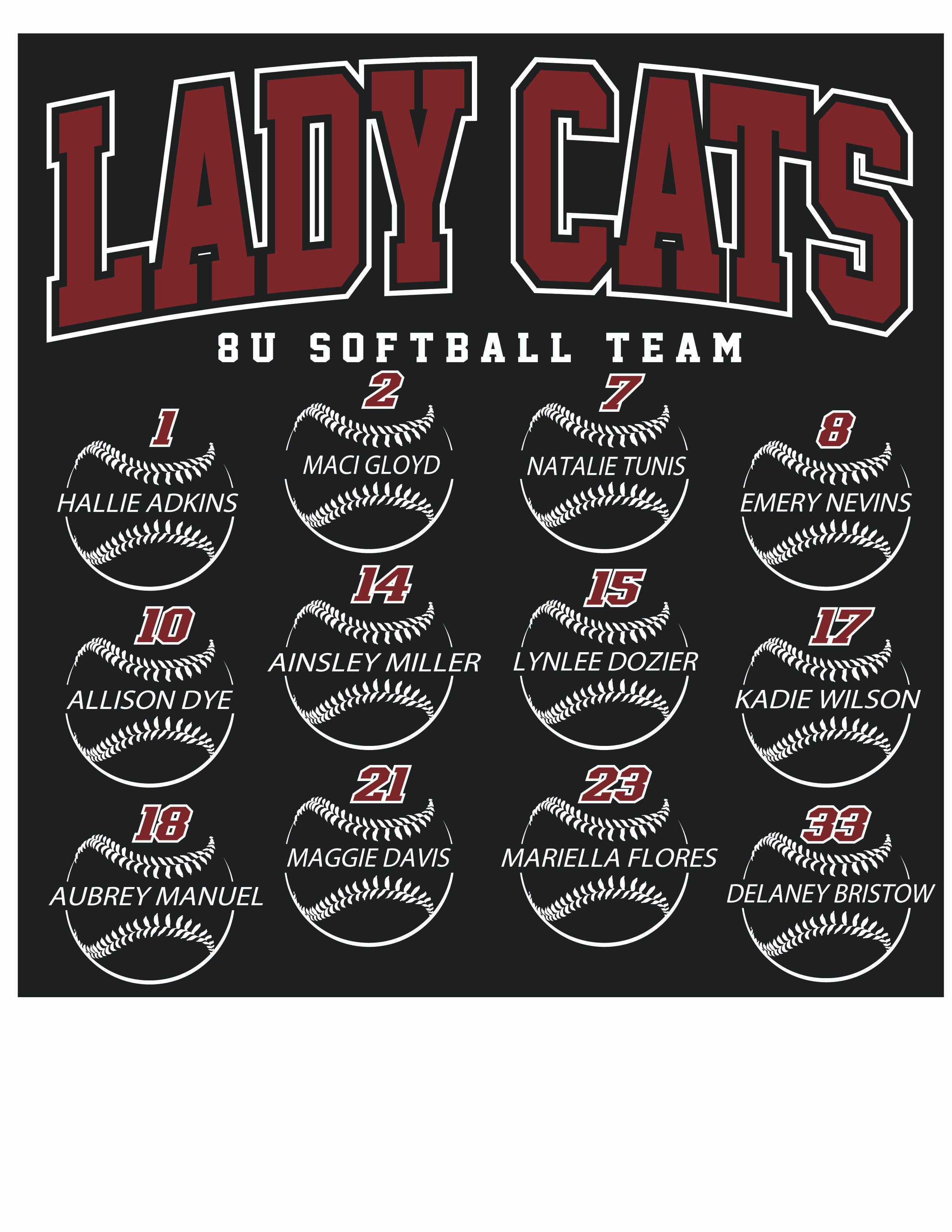 March 18th. Show your support for the Hawley Lady Cats Softball team with some merchandise. Hawley Lady Cats design on the front with Roster on the Back of a Black Tee. 6 different shirt options to choose from Short Sleeve or Long Sleeve - Cotton or Wicking, Crewneck Sweatshirt or Hoodie.