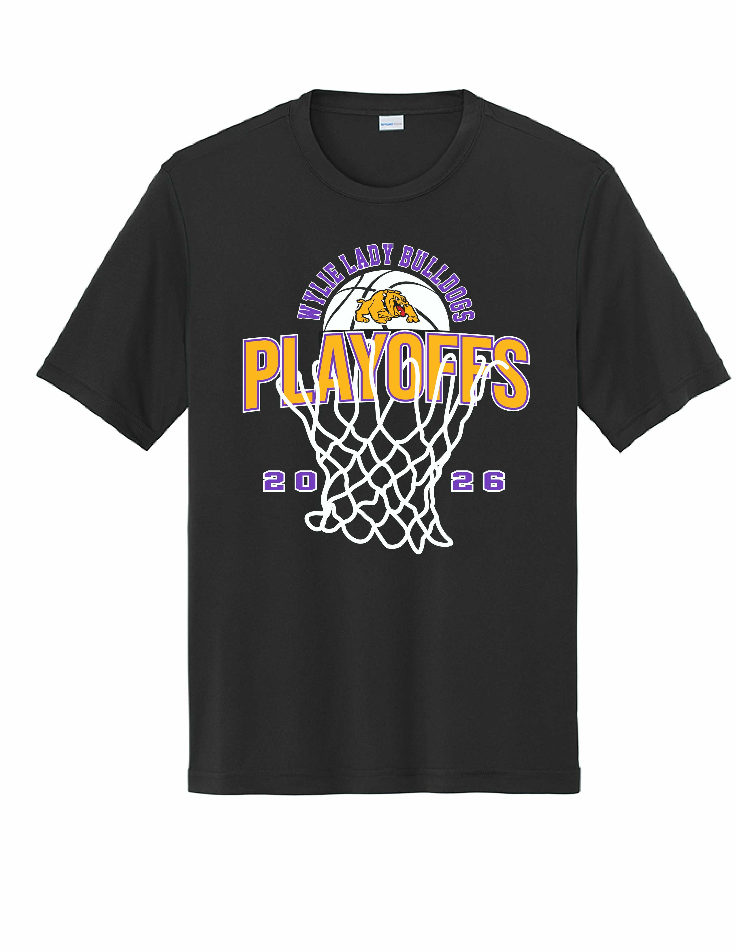 This is a Pre-Order.  The DEADLINE to order is Wednesday, February 11thShow your support for the Wylie Lady Bulldogs Basketball Team with some Play-Off merchandise.  Wylie Lady Bulldogs Basketball design on the front with the District Champions Roster on the back of a Black tee.  6 Shirt options are available to choose from Short Sleeve or Long Sleeve - Cotton and Dry-Fit, Crewneck Sweatshirt and Hooded Sweatshirt.