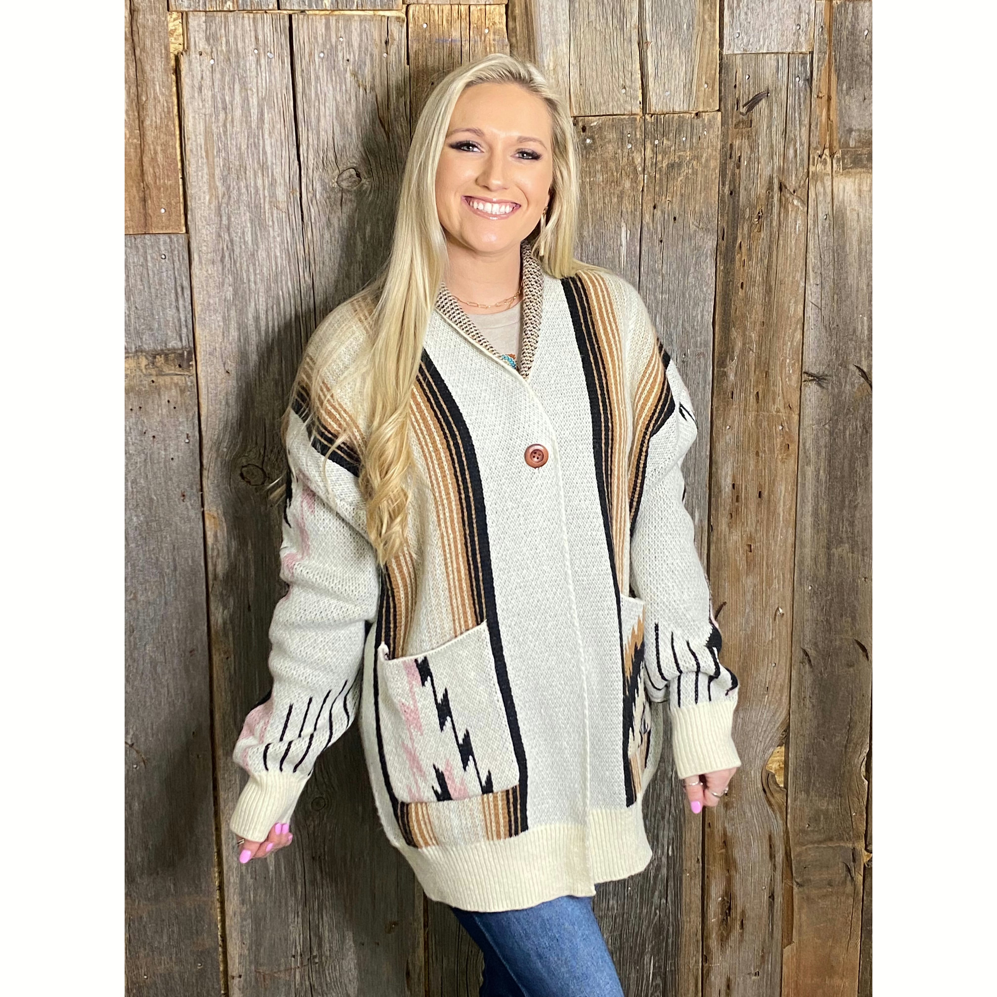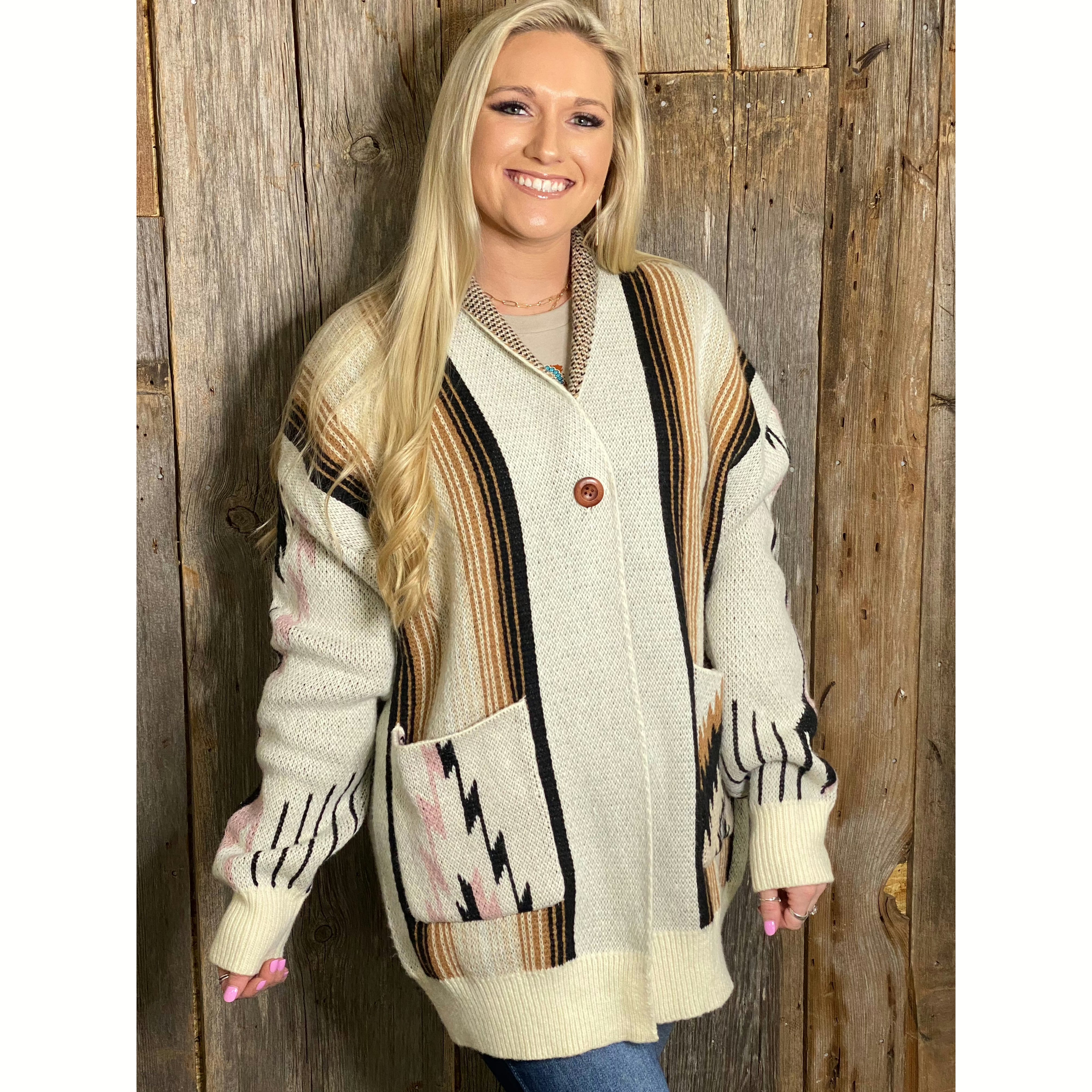 Isla Southwest multi color tribal pattern open front sweater cardigan.