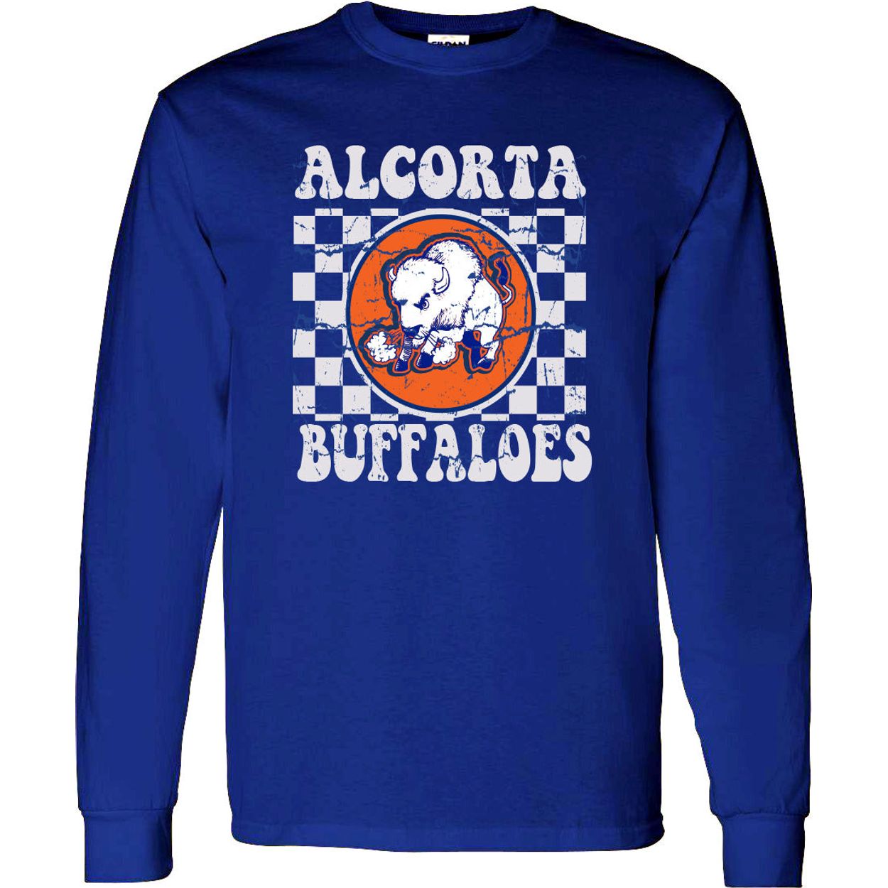 Show your Spirit with the perfect Alcorta Buffaloes Checkered Long Sleeve T-Shirt!
