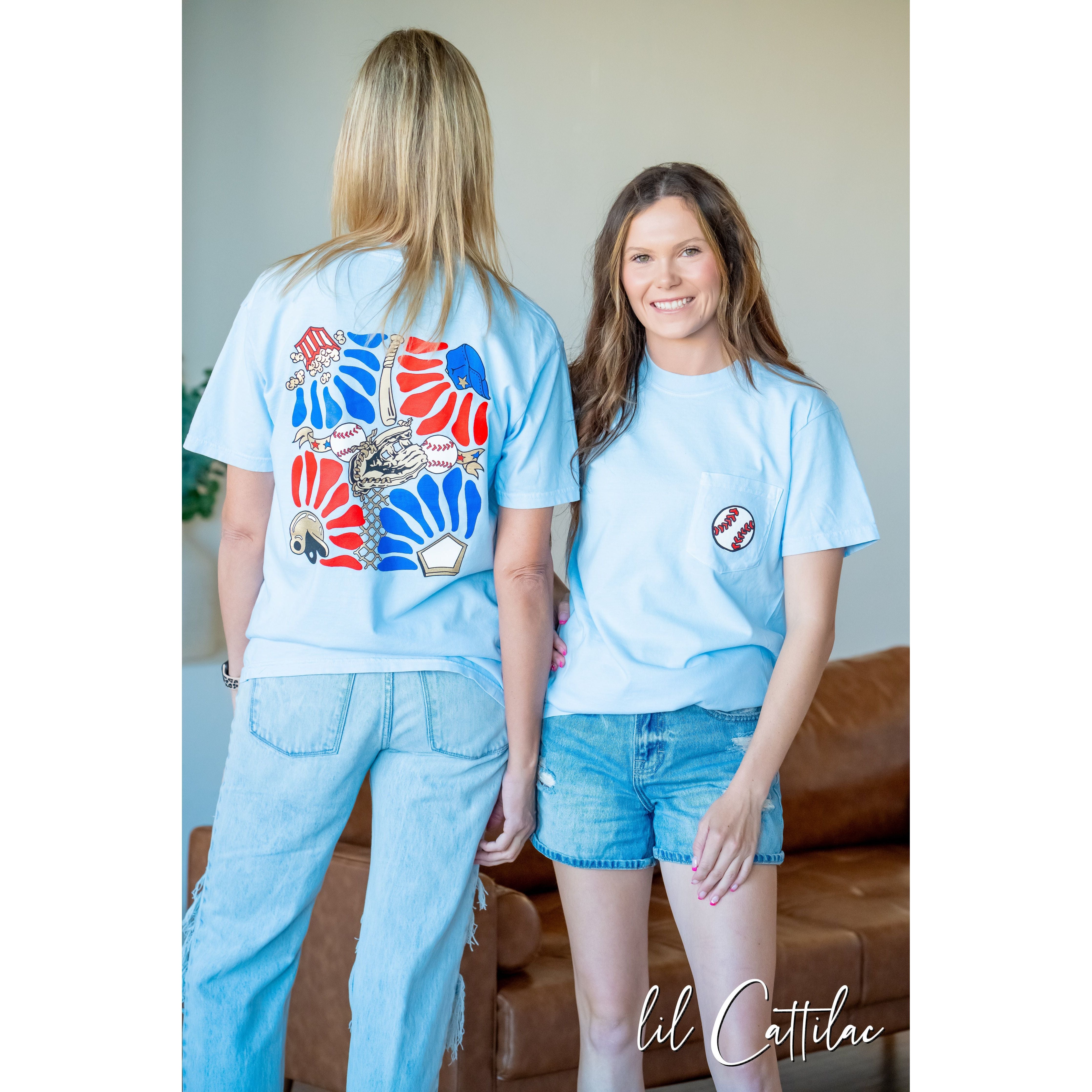 - Shown on a Hydrangea Comfort Color Pocket Tee