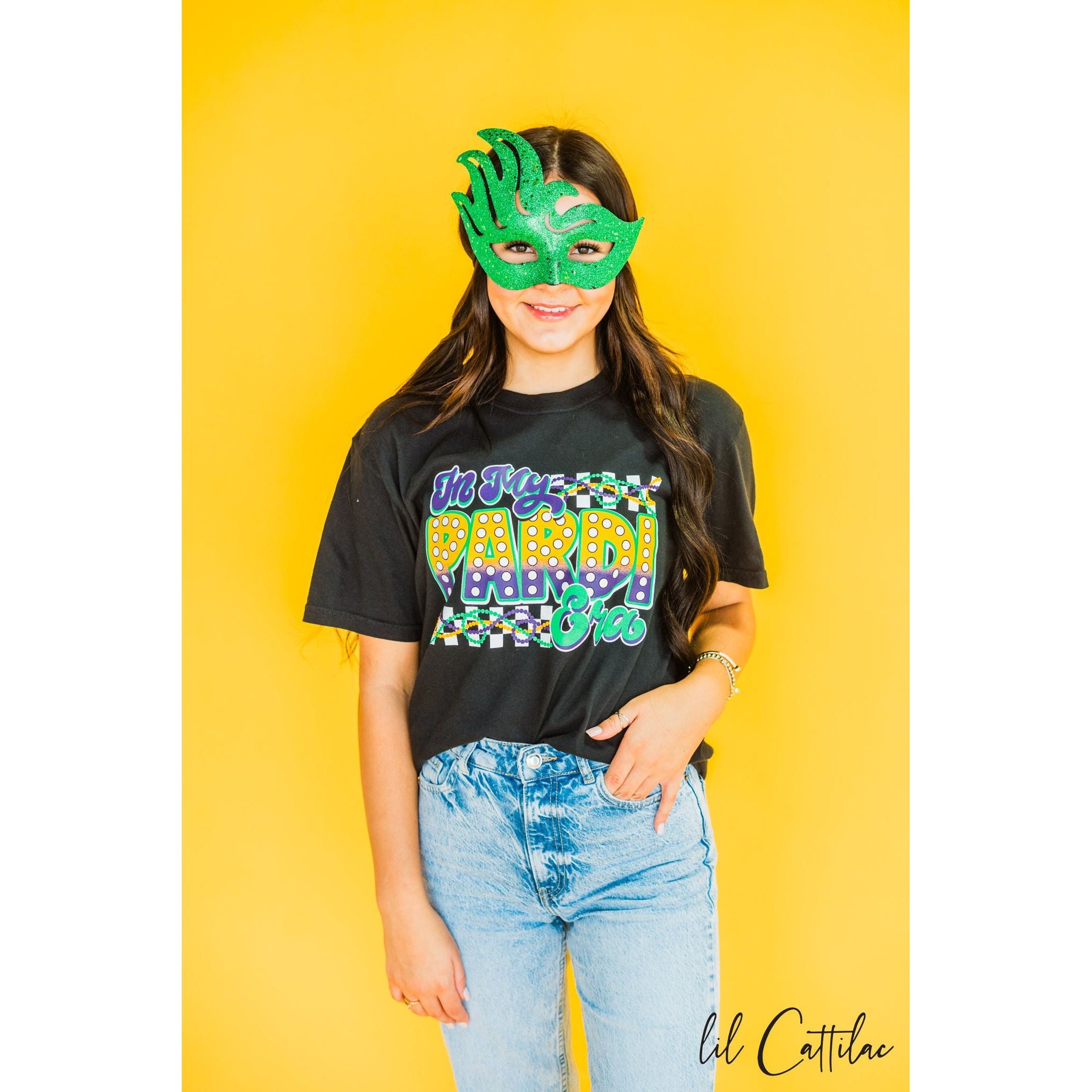 Get ready to dance through the streets and celebrate in style with our "In My Pardy Era" Graphic Tee by Spirit to a Tee. This vibrant Mardi Gras-inspired shirt is not just a piece of clothing; it's a ticket to immerse yourself in the lively spirit of the season. With a fun and colorful design that captures the essence of the festive season and a trendy check pattern in the background, this tee is the perfect way to announce your arrival at the Pardy. Available in sizes small to 3XL, it's time to unleash the revelry and embrace your Pardy Era.
