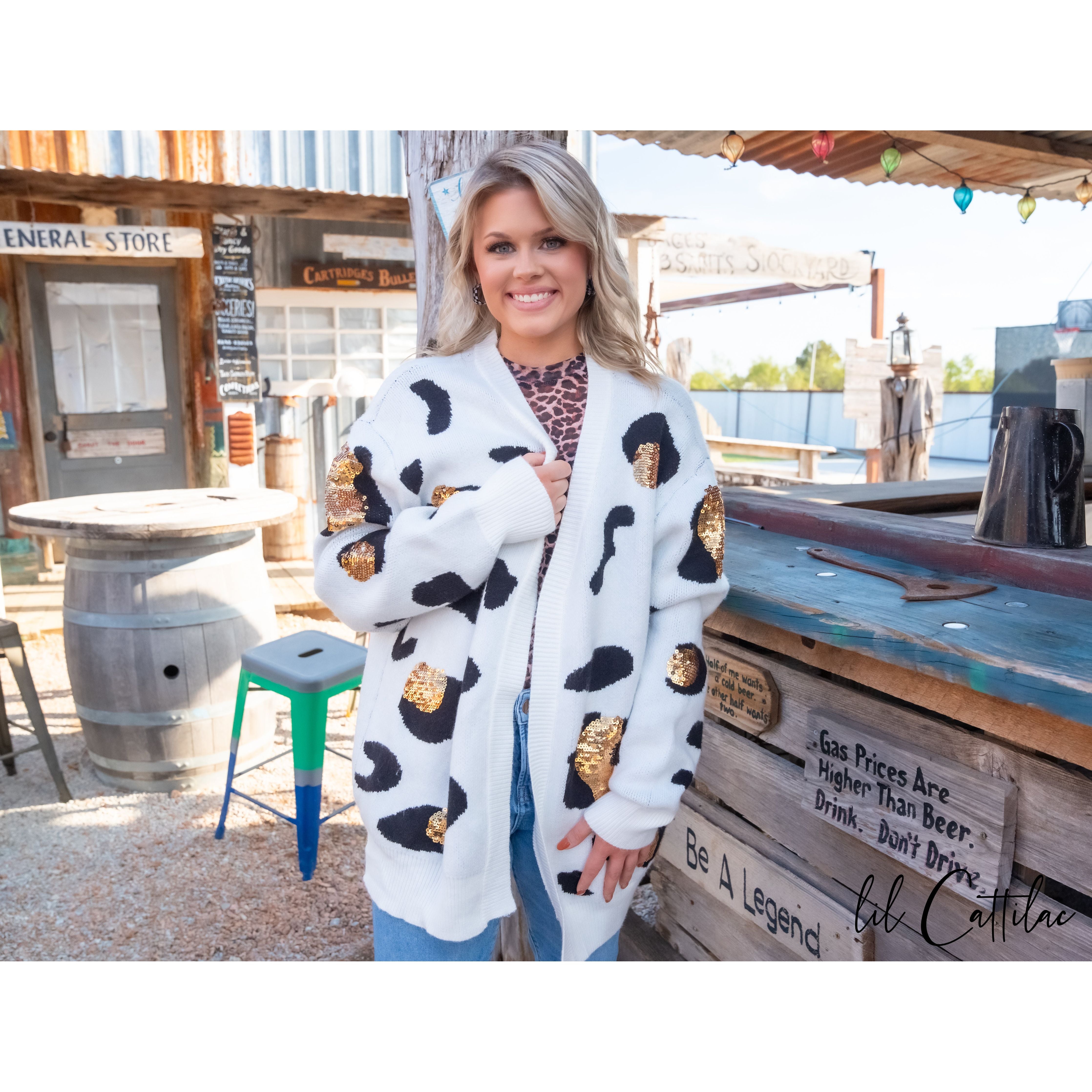 Ivy Animal Print with Sequins Pattern Long Sweater Open Cardigan