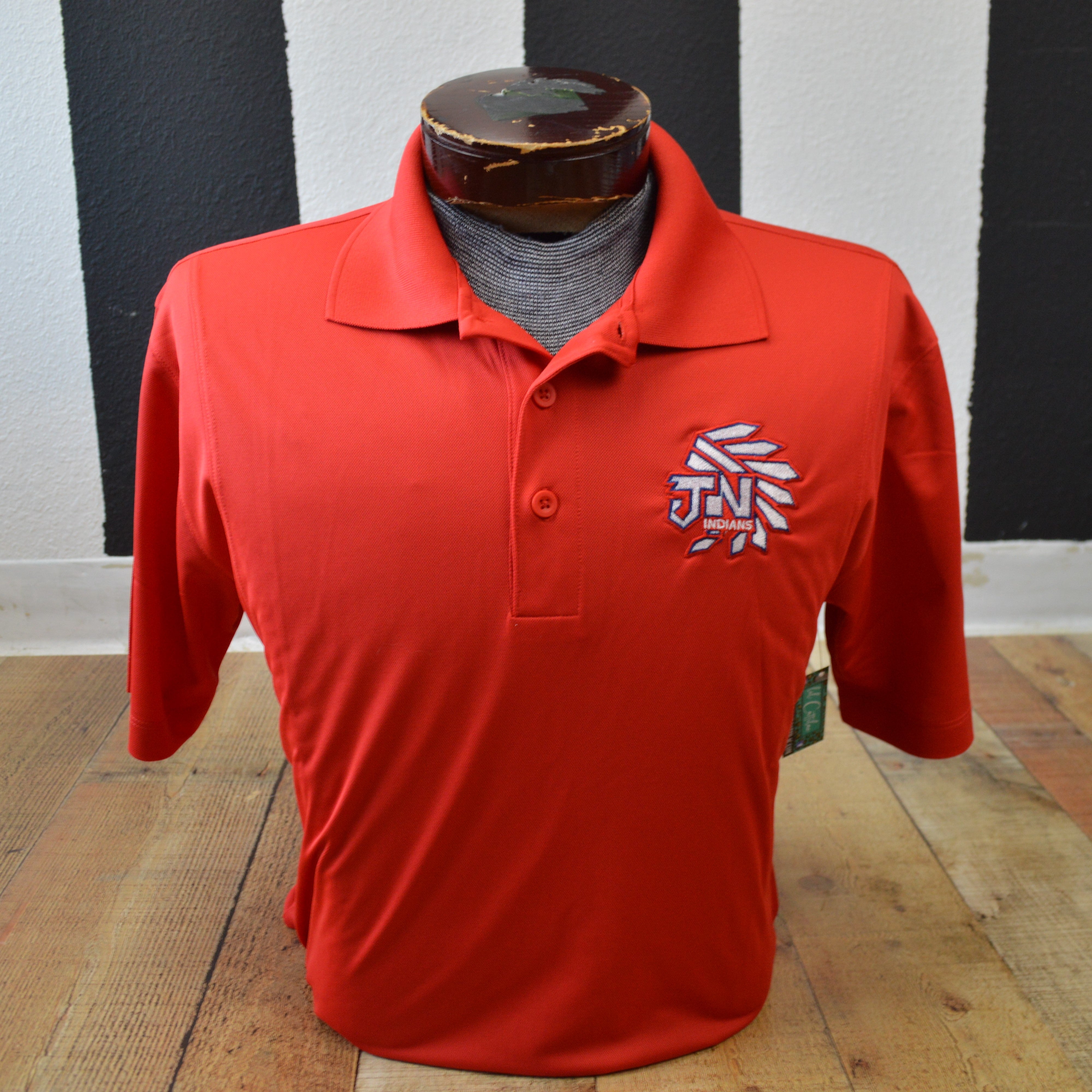 Show your Spirit with the perfect Jim Ned Indians red polo with headdress monogram.