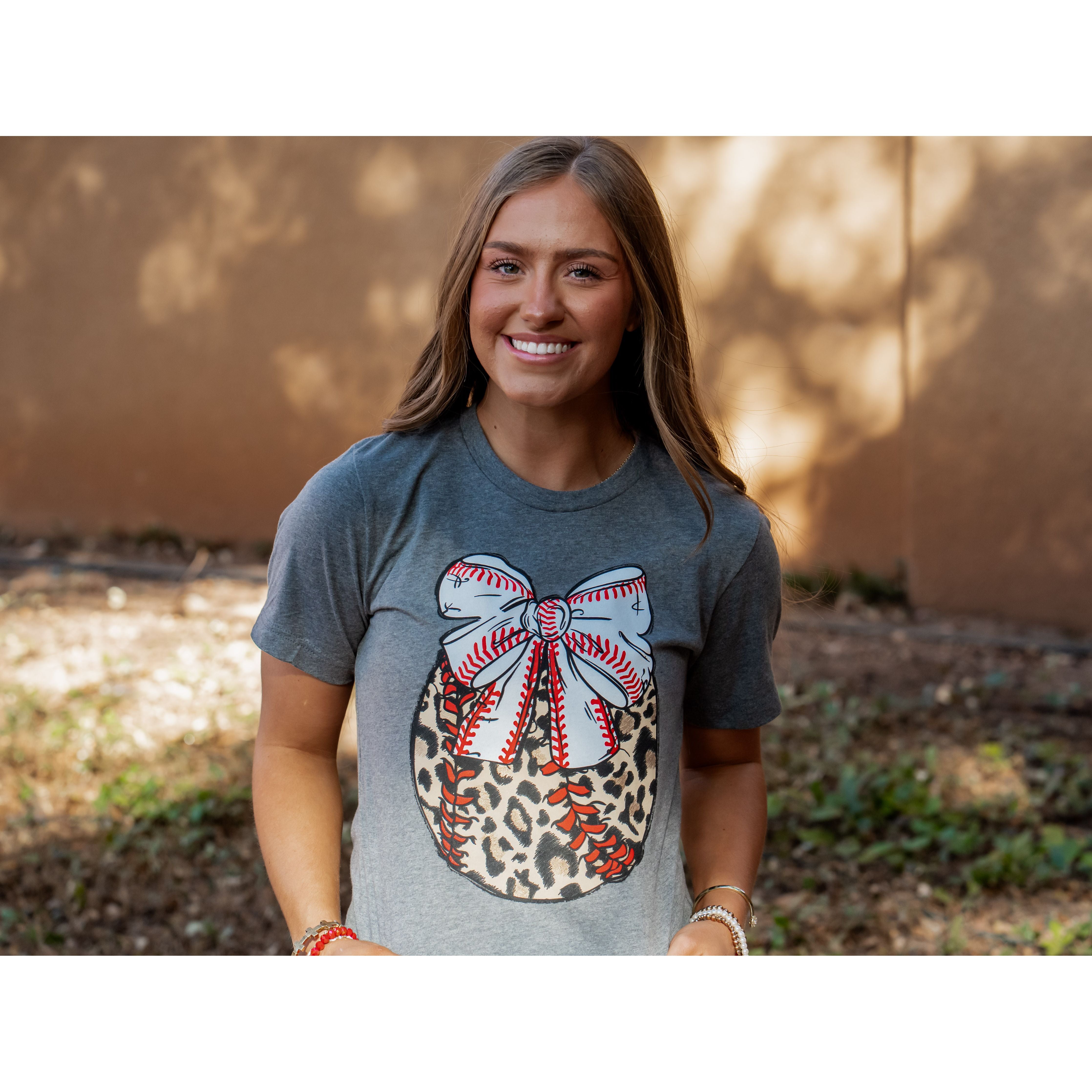 Leopard Baseball with Bow - Baseball Tee