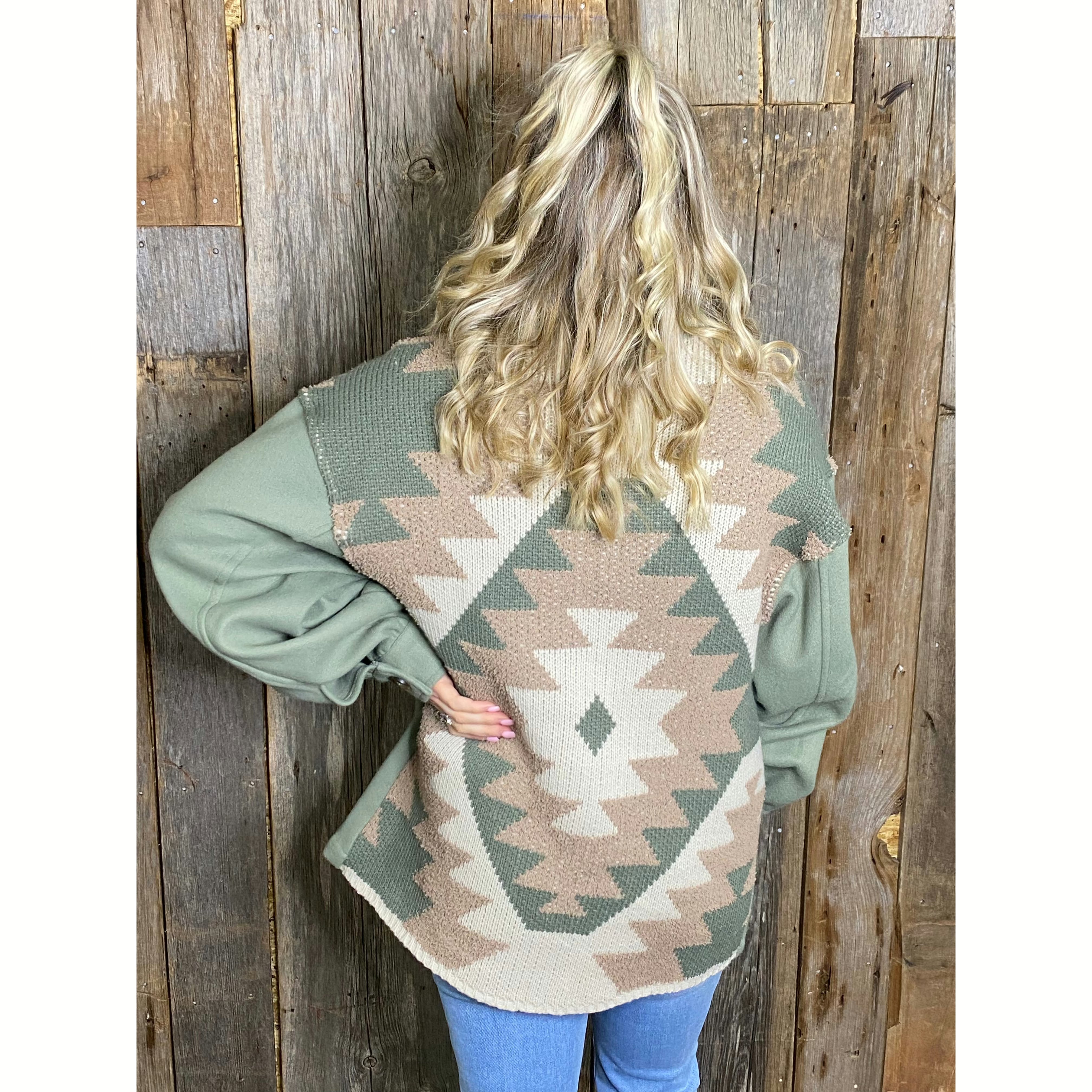 - Back aztec graphic detail jacket - Button down - Pockets patched - Dropped shoulder