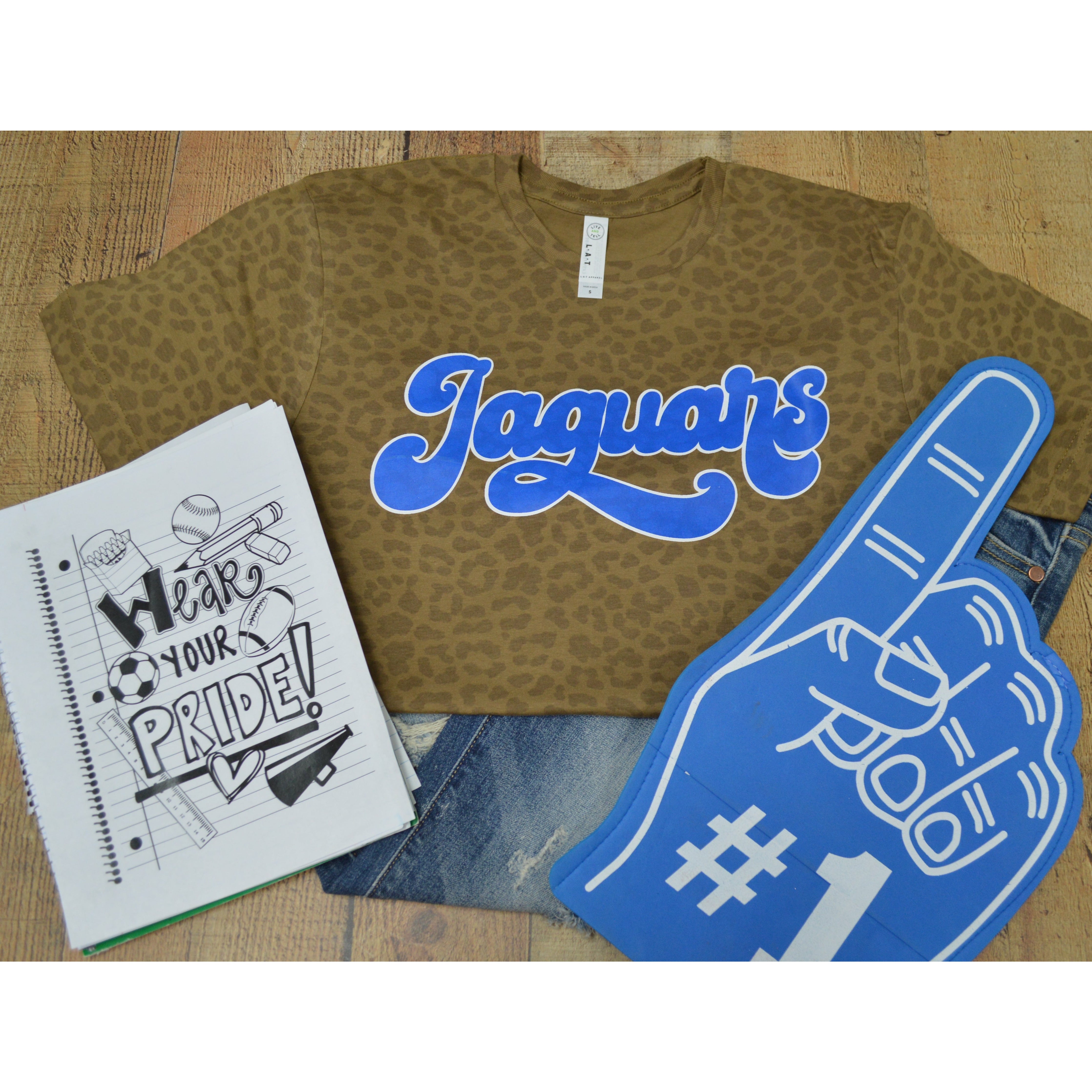 Show your Spirit with the perfect Purcell Jaguars Script with Animal Print T-Shirt!
