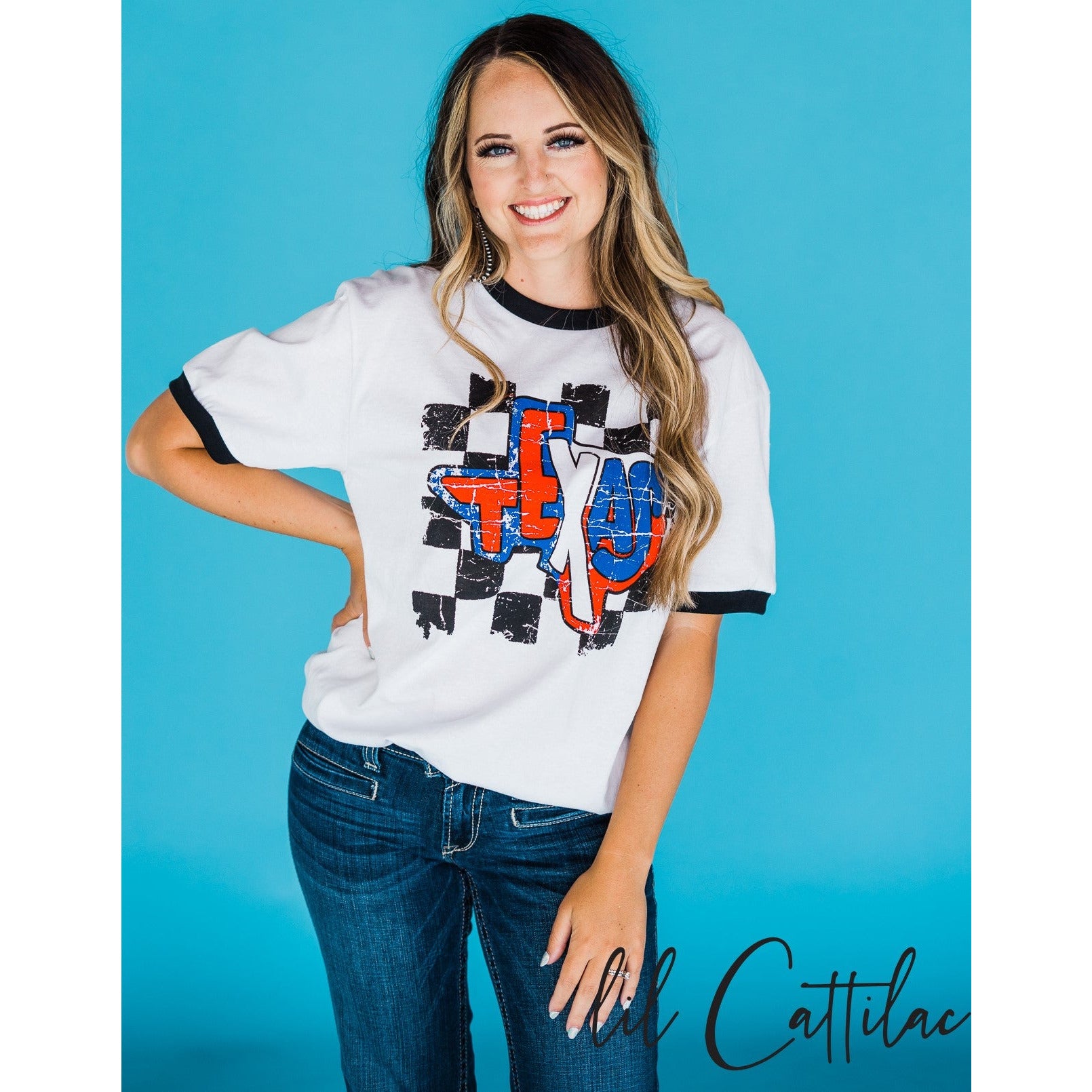 So what are you waiting for? Add the State of Texas Checkered Graphic Tee by Spirit To A Tee to your collection today and start showing off your love for Texas in style!Our women’s clothing boutique is based out of Abilene Texas and we are open Mon - Fri from 9:00AM - 5:30PM and online 24/7 for your late night shopping addiction! Be sure to follow us on instagram @lilcattilac to stay up to date on all of our new affordable products and sales!