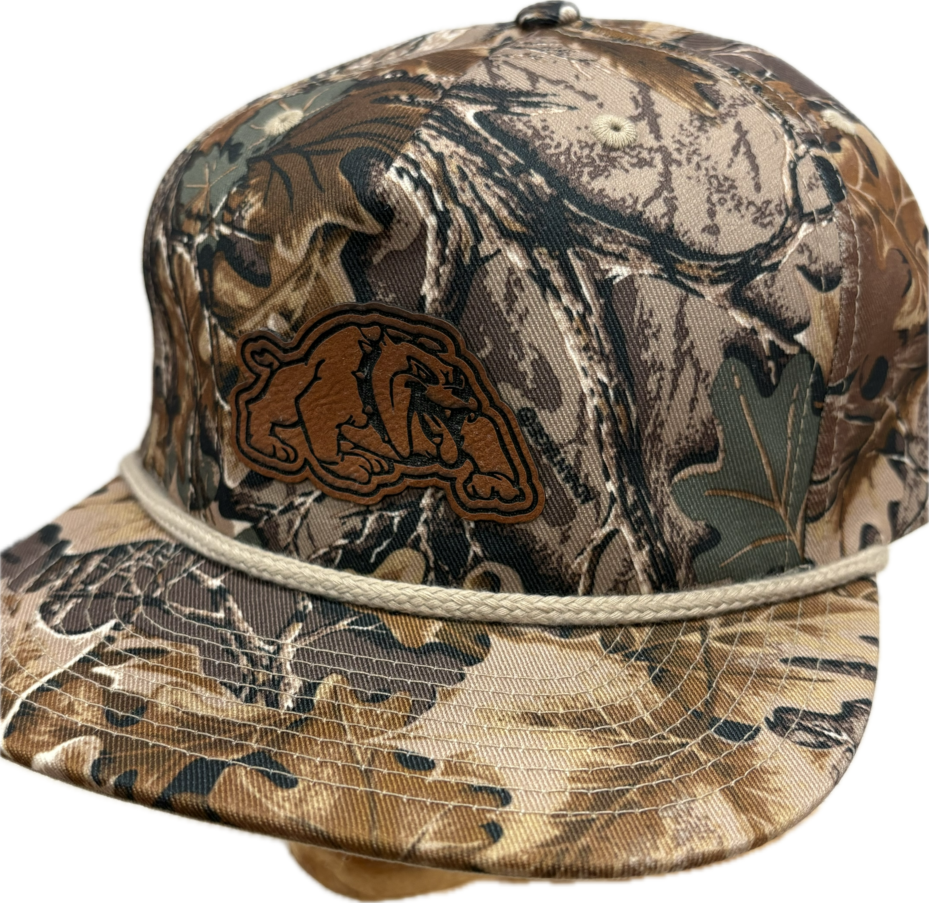 Show your spirit in this Wylie Bulldogs mascot leather patch on a Real Tree Camo Rope Cap! Featuring a flat visor, flip-up buckram, 5mm rope, and UPF 50+ protection, the 256 delivers throwback golf vibes in a modern package.